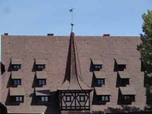 Nur wenige Meter weiter den Berg hinauf liegt die Kaiserburg. Das schöne Wetter bereitet mir mit der hervoragenden Aussicht über die Stadt ein Geschenk. Ich erkunde den Burghof und den Burggarten und folge der Stadtmauer Richtung Westen. Eine kleine Tür führt zum Wehrgang, von dem man angeblich den schönsten Blick auf Nürnberg hat. Es ist der Blick auf das Albrecht-Dürer-Haus vom Tiergärtnertor aus; mein nächstes Ziel.