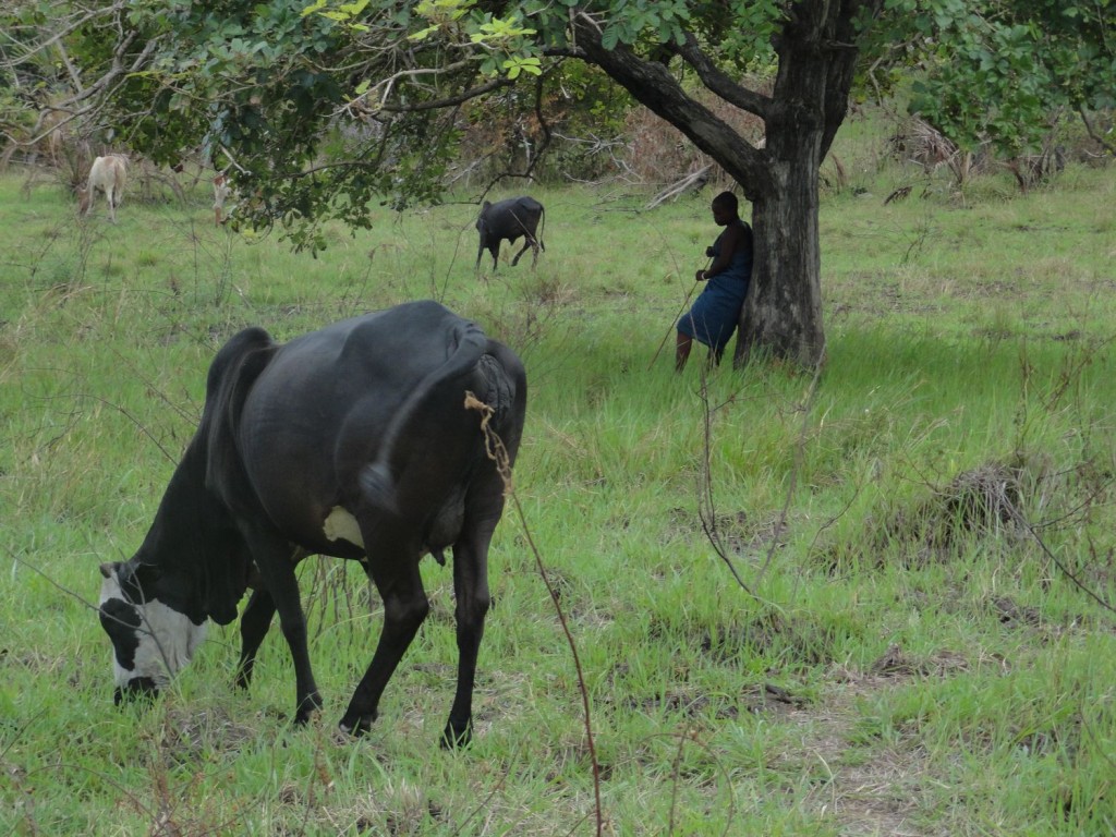 Die beiden marschierten also los. 1 1/2 Stunden querfeldein bis wir die ersten Kuhherden erreichten. Sie zeigten uns dann noch die simplen Hütten von Jonasi und wir konnten sein Kind und seine Frau treffen. Neben Kühen zeigten sie uns auch ihre Ziegenherde und einige Esel.
